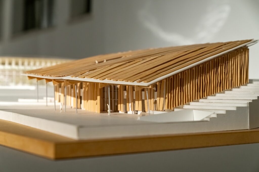 A mostra destaca, entre as principais obras de Kengo Kuma em Portugal, a renovação do Centro de Arte Moderna da Fundação Gulbenkian, em Lisboa, onde criou uma ligação fluida entre o edifício e os jardins, inspirando-se na tipologia japonesa ‘engawa’ e valorizando materiais portugueses.