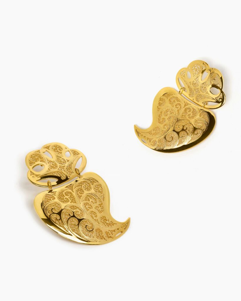 A coleção inclui colares, brincos, arcadas e um anel, “é trabalhada manualmente pelos artífices mais conceituados da ourivesaria portuguesa, preservando técnicas ancestrais de filigrana e enchido”, refere a marca de joalharia.
