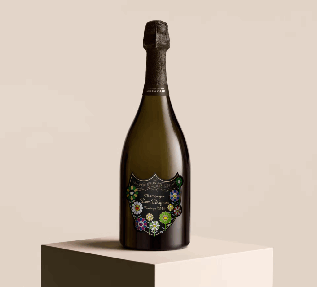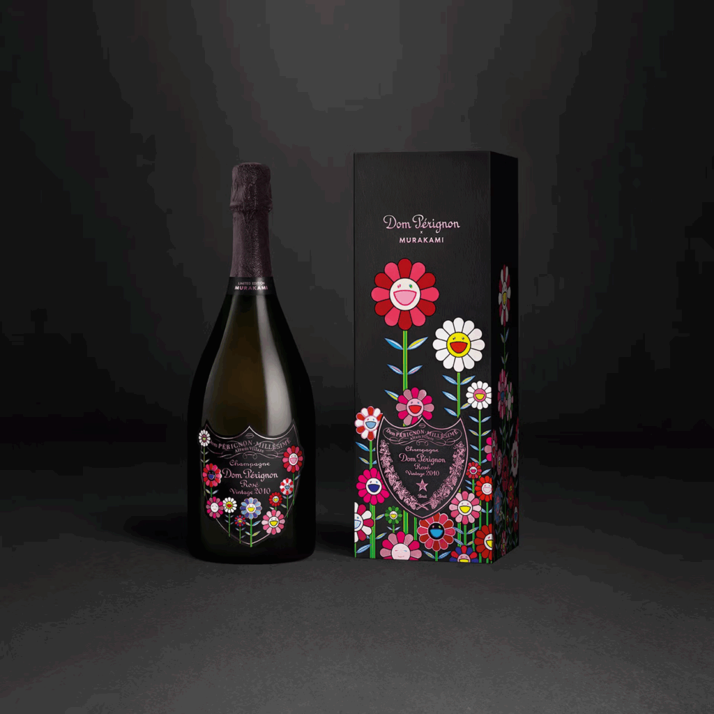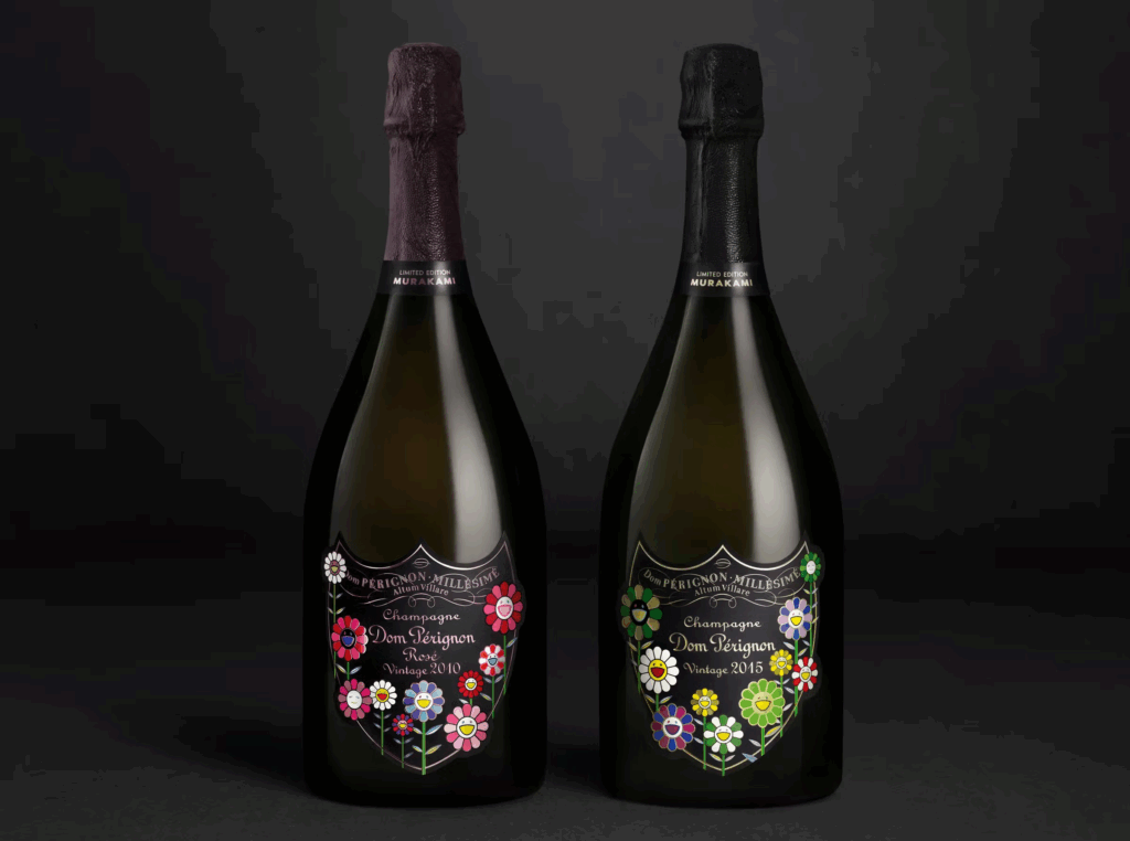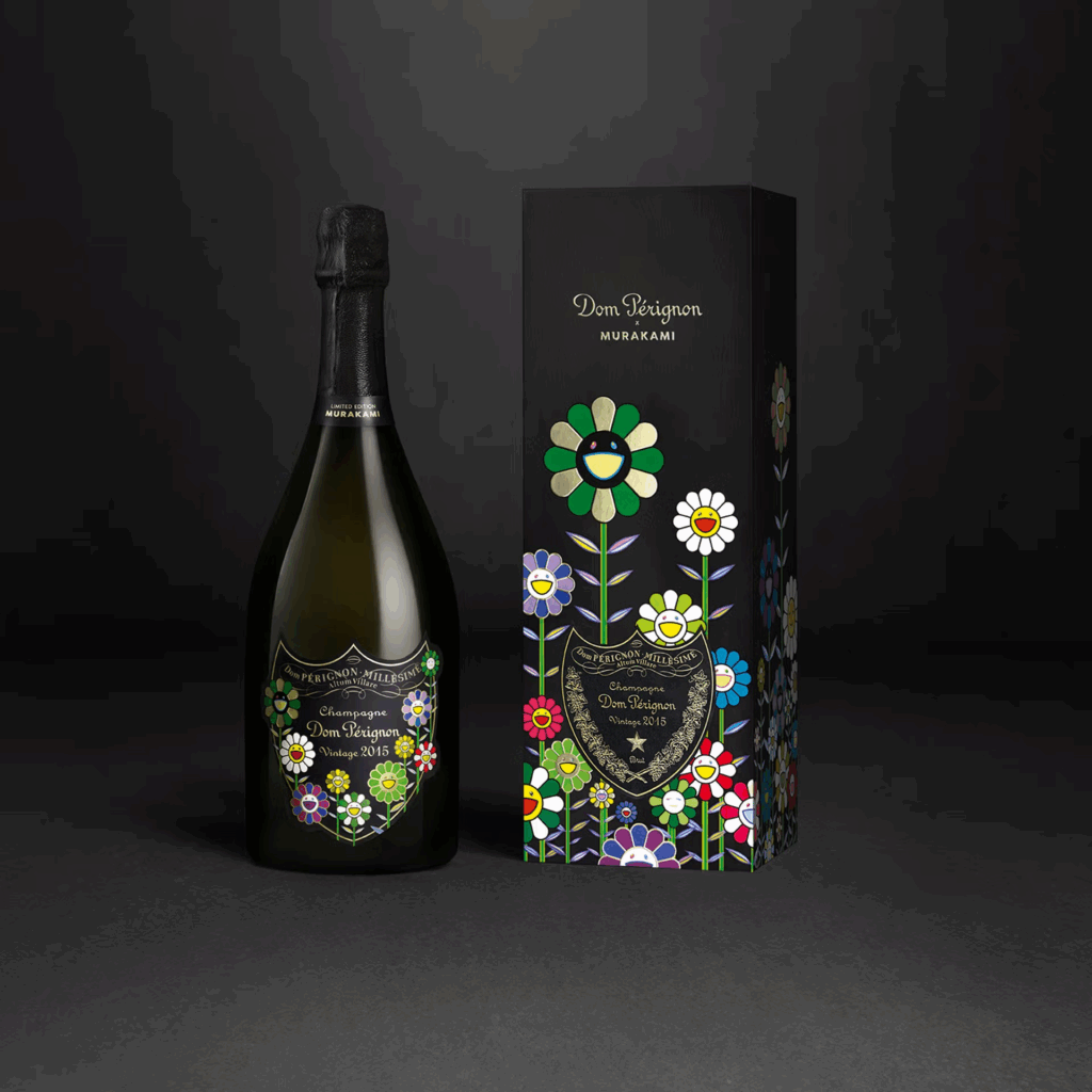 Desenhos de Takashi Murakami decoram as garrafas, numa edição limitada, do Dom Pérignon Vintage 2015 e do Dom Pérignon Rosé Vintage 2010. Cada garrafa de champanhe é transformada numa obra de arte contemporânea colecionável com design para brindar. As imagens tradicionais das garrafas com as vinhas desenhadas no escudo Dom Pérignon dão, agora, lugar a uma paisagem florida de cores vibrantes, com assinatura do criador icónico japonês Murakami.