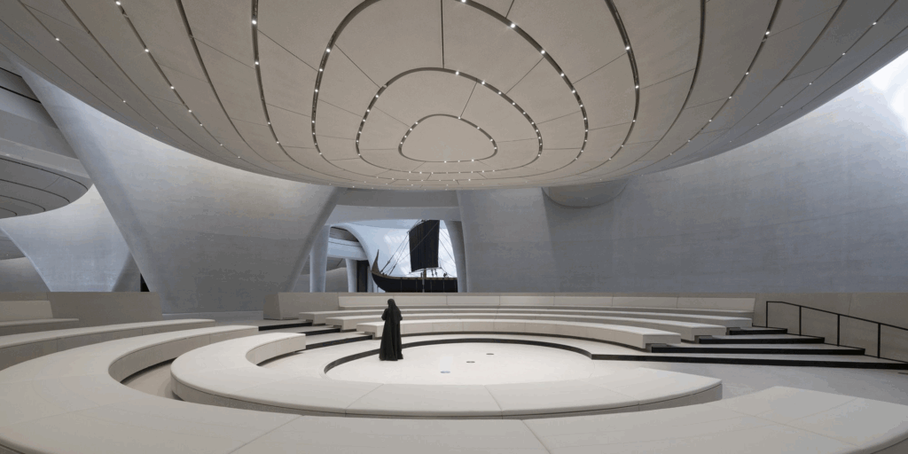 O museu dispõe de seis galerias permanentes, quatro galerias em forma de cápsula estão suspensas acima do Al Liwan e proporcionam ambientes controlados para proteger os artefactos sensíveis em exposição. No piso térreo, há mais dois espaços de galeria permanentes próximos às entradas do museu, bem como um espaço de exposições temporárias, um restaurante e um café.