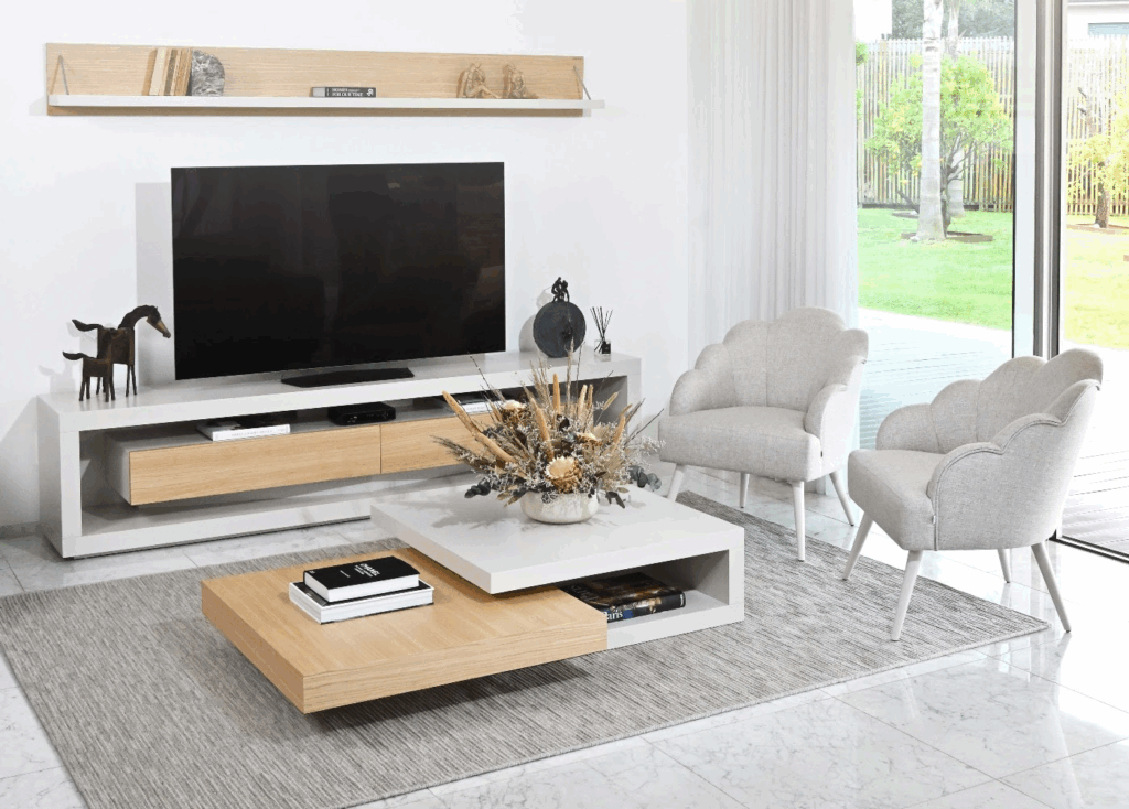 Para a sala de estar o conforto é o destaque, num cenário idealizado para momentos tranquilos e de convívio. A Antarte oferece soluções funcionais com móveis de TV compactos, que permitem otimizar espaços e sublinhar a estética das peças. As mesas de centro ou mesas de apoio para sofá foram também pensadas para otimizarem o espaço e completarem a decoração.
