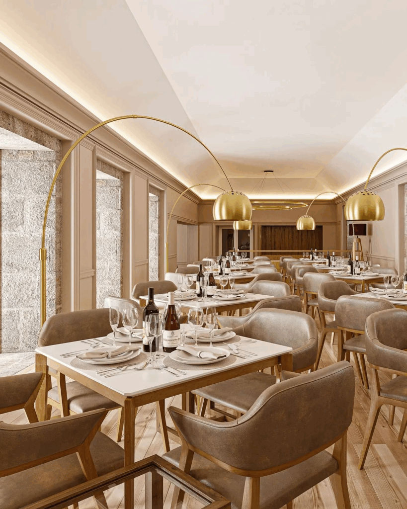 O hotel apresenta também o restaurante Mosto Food & Wine, com cozinha tradicional minhota assinada pelo chef Eduardo Costa que confere um toque contemporâneo com produtos da região, acompanhados com uma seleção de vinhos que privilegia a produção local dedicada aos Alvarinhos.